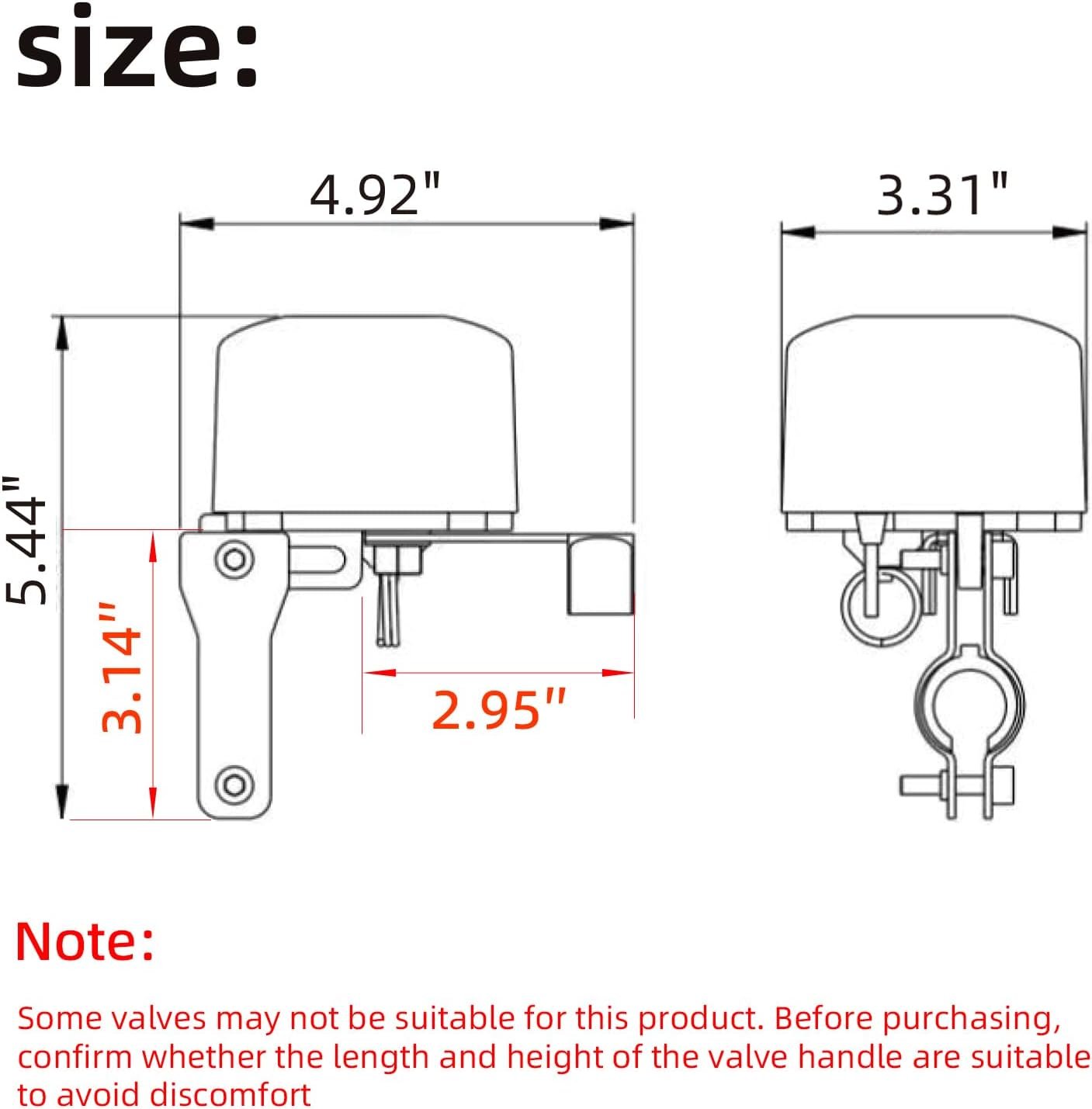 >>>NOTICE: Before purchasing, please carefully confirm the type and size of the valve to avoid installation problems.<<< 🛠️Easy Install:Two types of brackets are available, compatible with 1/2", 3/4", 1" water pipes (1.5" not supported). Or the range of water pipe diameter is: 20mm~44mm.