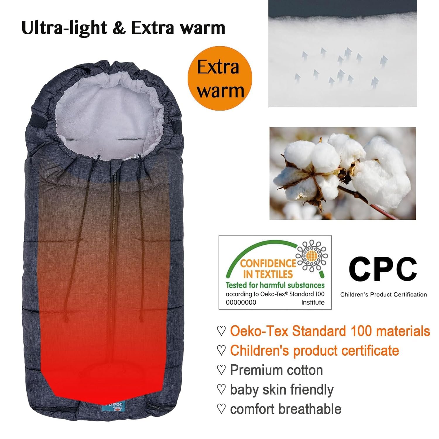 YOUR BABY EASY IN & OUT FOR CENTROL OPEN DESIGN: Middle zipper, easy for your baby in and out. Two bottom zipper design for your baby foot temperature control.