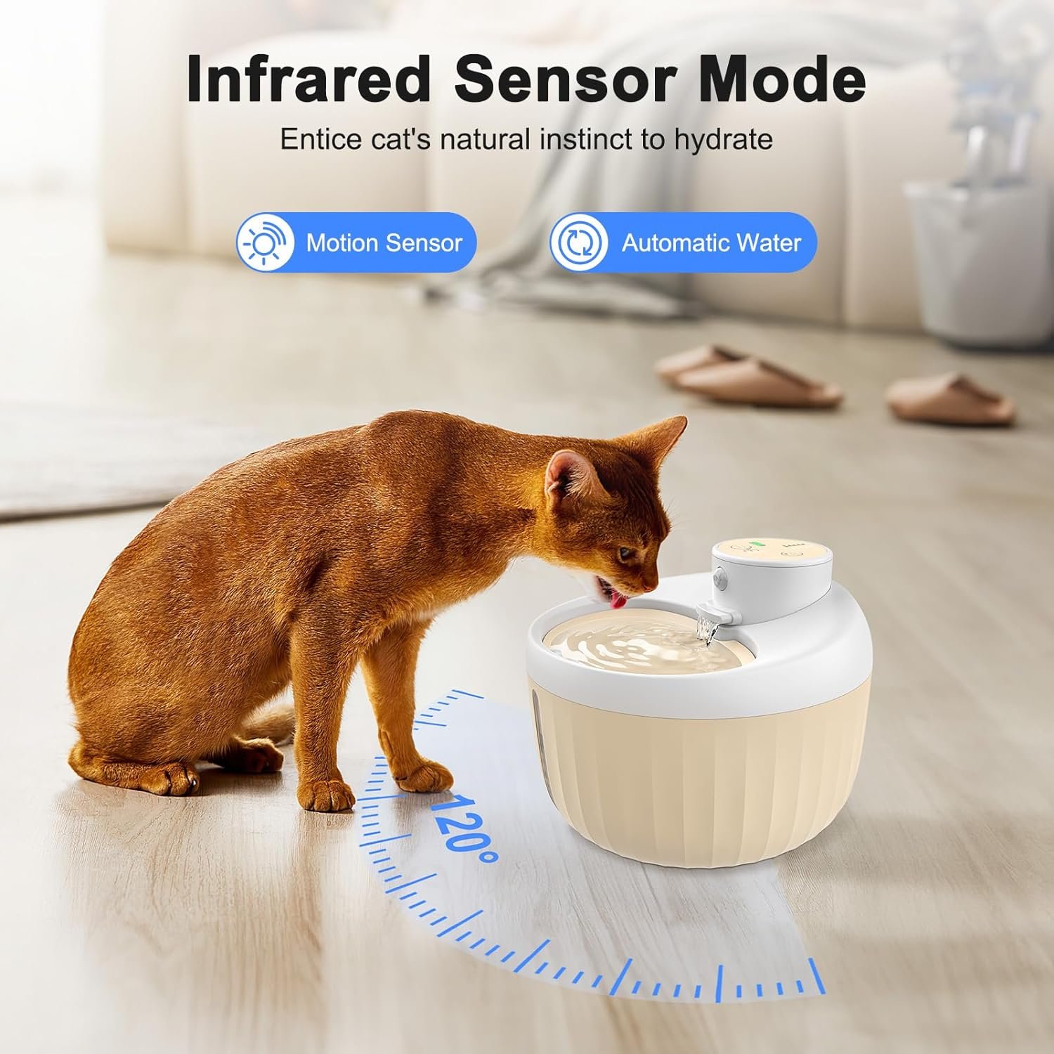 1.6L Capacity: The capacity of the motion sensor cat water fountain is 1.6L, which can meet the drinking needs of adult cats for 5-6 days. It also has a low water level detection alarm to remind you to change the water. Drinking water needs to be changed frequently in order for cats to drink healthy water, and this capacity is just right for the frequency of water change.
