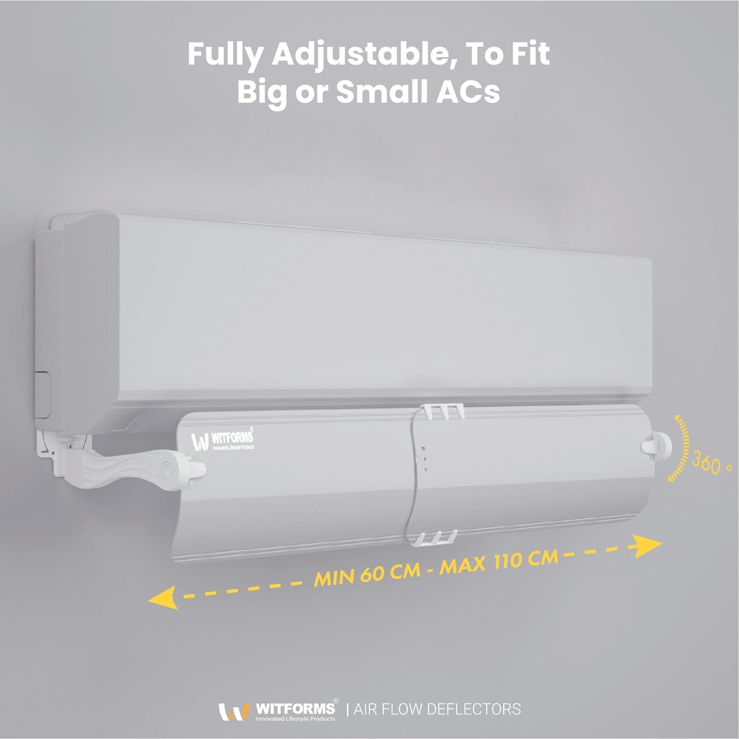 Adjustable to fits all Split air conditioner types that contain air outlet range between 60 cm and 110 cm in length.Rotatable 360°, can be adjusted freely to change the air-conditioner wind direction.White color wings.