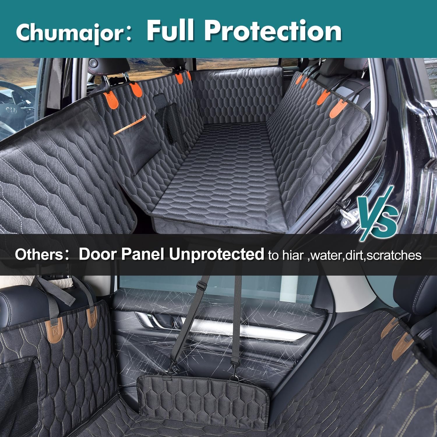 【𝐏𝐫𝐨𝐭𝐞𝐜𝐭𝐬 𝐘𝐨𝐮𝐫 𝐕𝐞𝐡𝐢𝐜𝐥𝐞‘𝐬 𝐈𝐧𝐭𝐞𝐫𝐢𝐨𝐫】 Our back seat pet cover for dogs acts as a shield, safeguarding your car’s interior from scratches, stains, and other damage caused by pets. The waterproof and spill-resistant material ensures that any accidents or spills are contained, preventing them from seeping into your seats and causing lasting damage.