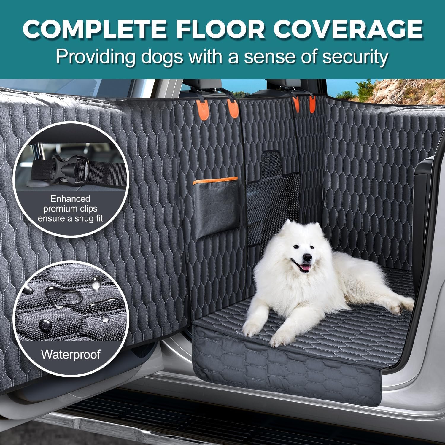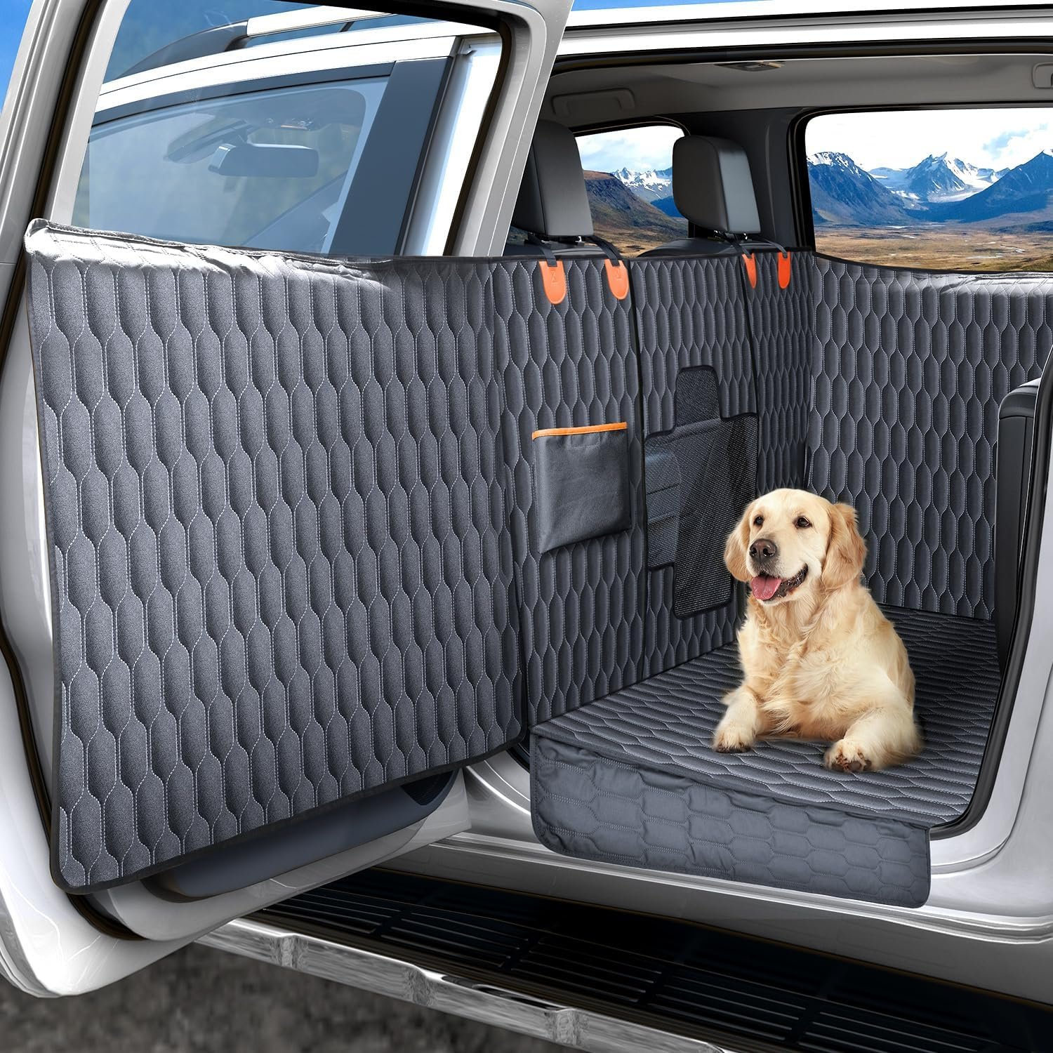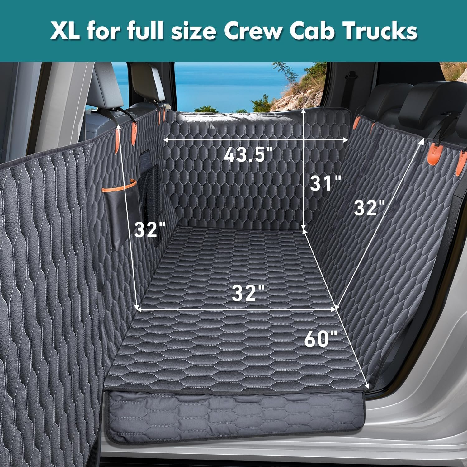 【 𝐖𝐚𝐭𝐞𝐫𝐩𝐫𝐨𝐨𝐟 𝐚𝐧𝐝 𝐄𝐚𝐬𝐲 𝐭𝐨 𝐂𝐥𝐞𝐚𝐧】 Our pet seat cover for back seat offers full protection against muddy paws, pet hair, spills, and drool. With the largest door panel protection, every corner of your truck’s extended crew cab remains spotless. The cover is fully waterproof and washable, making it easy to maintain and keep your trips pet-friendly.
