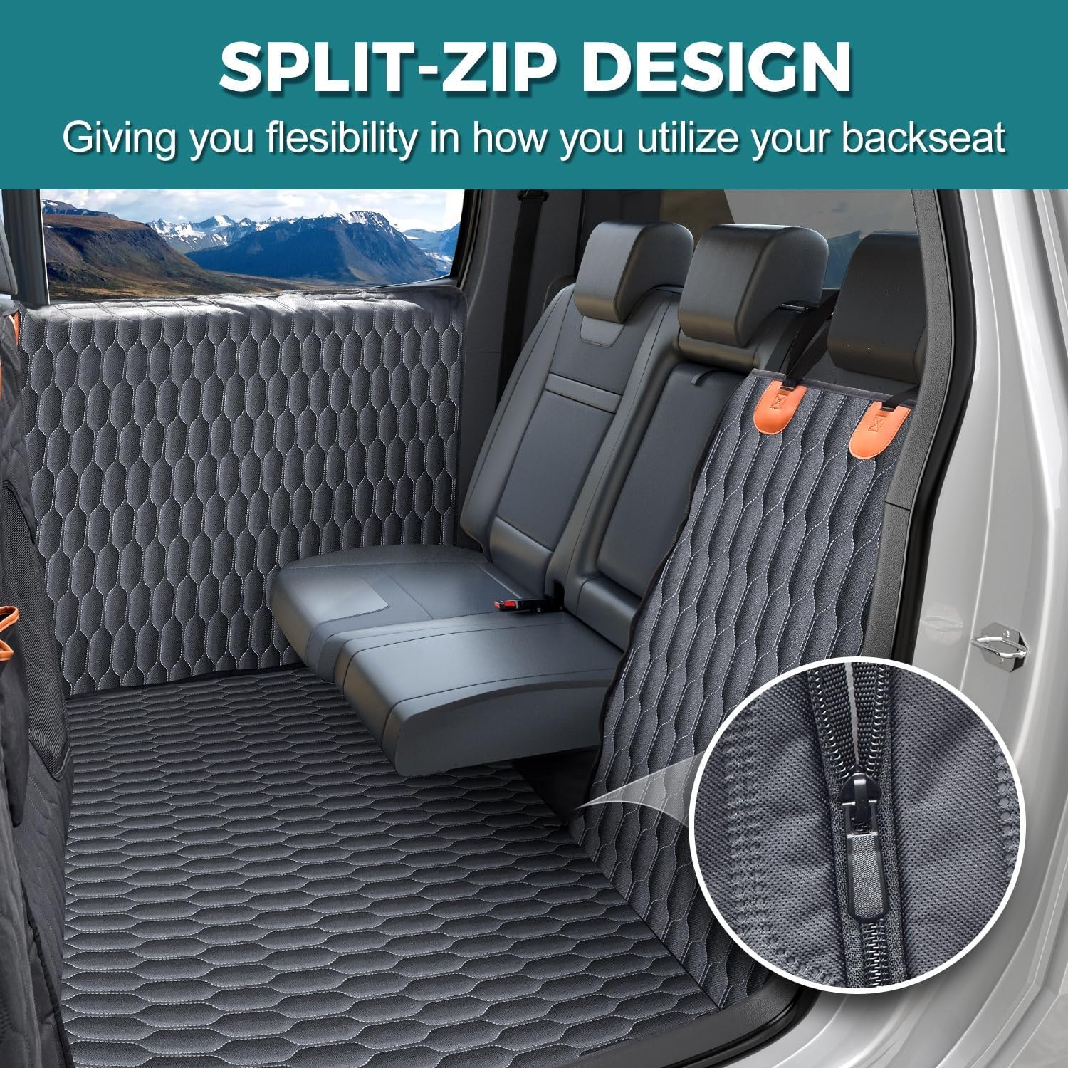 【𝐒𝐮𝐩𝐞𝐫𝐢𝐨𝐫 𝐅𝐢𝐭 𝐚𝐧𝐝 𝐂𝐨𝐧𝐯𝐞𝐧𝐢𝐞𝐧𝐜𝐞】Our dog car seat cover for back seat is ingeniously crafted to seamlessly fit into any large truck with fold-up back seats. The unique strap design effortlessly accommodates split backseats, allowing you to fold down one or both sides for passenger comfort without the need to remove the hammock.