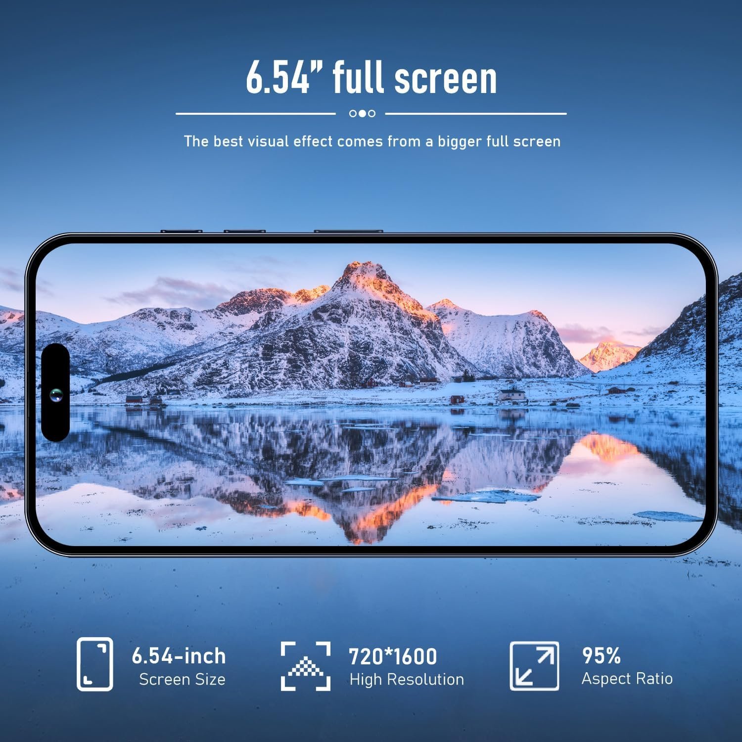 1、4G DUAL SIM CELL PHONE – I14 PROMAX supports 4G/3G/2G cellular, much wider frequency bands. Please confirm with the carrier whether they can support our bands(4G LTE FDD:B2/4/5/12/25/26/61/66 ; 3G WCDMA 850/1900/1700; 2G GSM: 1900/850/1700) 2、6GB+256GB STORAGE UNLOCKED PHONE – I14 Pro Max adopts a octa-core processor which strikes a balance between performance and power consumption, runs most applications smoothly. Comes with a 6GB RAM+256GB internal storage can be inserted to provide plenty of room for images, videos, files, games etc.. 3、Dynamic Island – bubbles up music, sports scores, phone calls, and so much more. Without taking you away from what you’re doing, and works with lots of different apps to seamlessly surface what you need, right when you need it. 4、6.54 Inch Full Screen – This cell phones with the large 6.54″ FHD+ LCD that delivers vivid details, and a 95% screen-to-body ratio. 5、Marvellous 50MP camera – The 50MP and 2MP macro captures breathtakingly fine details up close, 13MP front camera with built-in portrait enhancements shows your best side in every selfie or video call, always. 6、5000mAh big Battery Android 13 Unlokced Phones – Android 13 smartphone is equipped with an above-average 5000mAh battery, which lasts longer than you might expect. Intelligent and thoughtful AI battery management can reduce excessive cache to save more power and then to be longer standby time.M14 phone stay along your side, ready for your need! 7、Unlocked Smart Phone – The I14 Pro Max phones Unlocked for All Carriers.