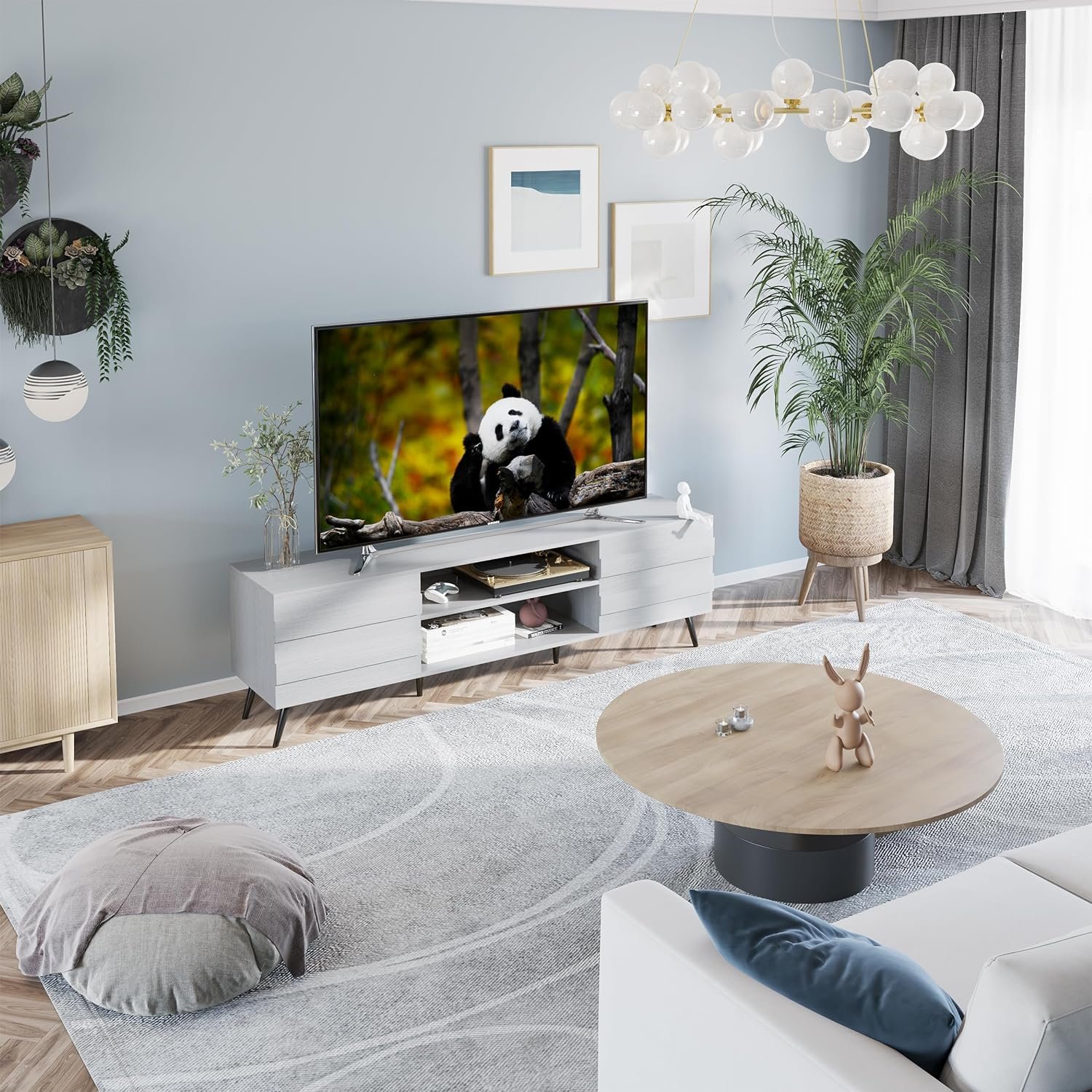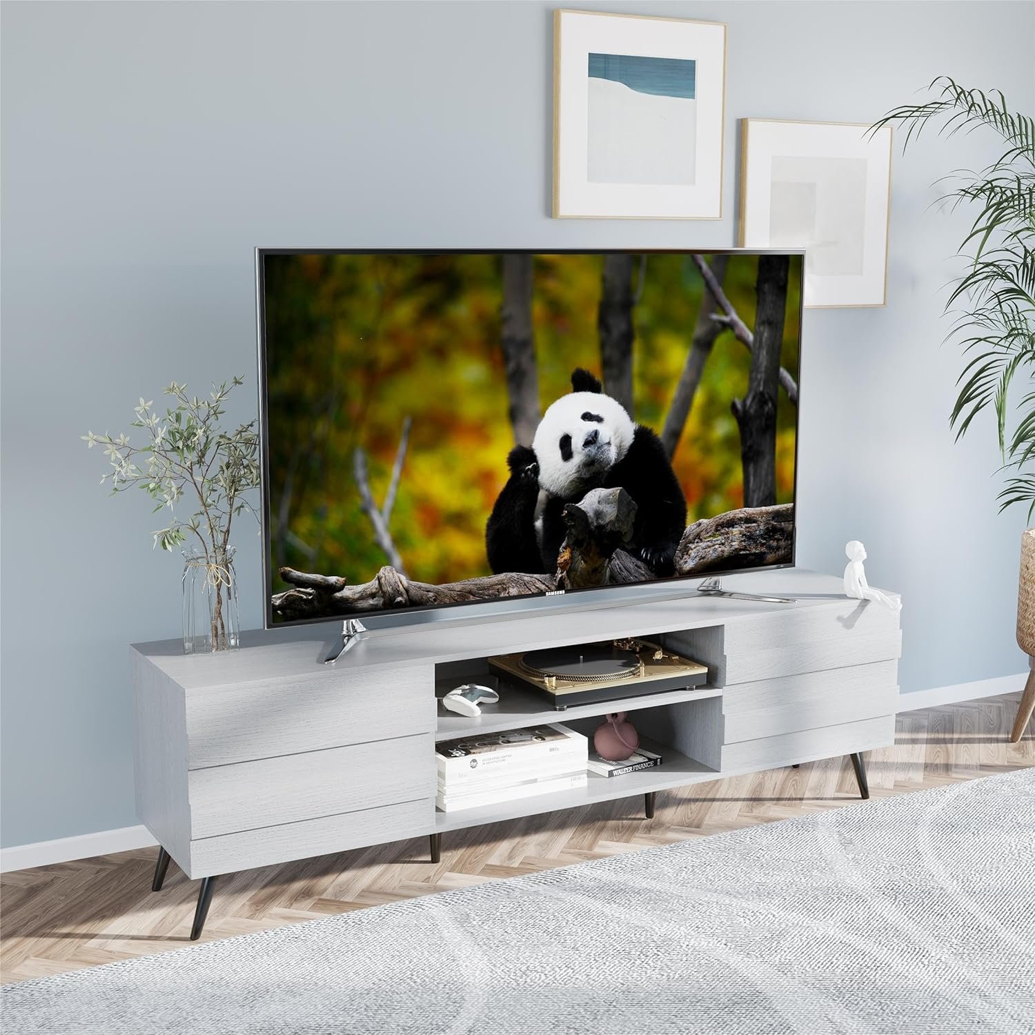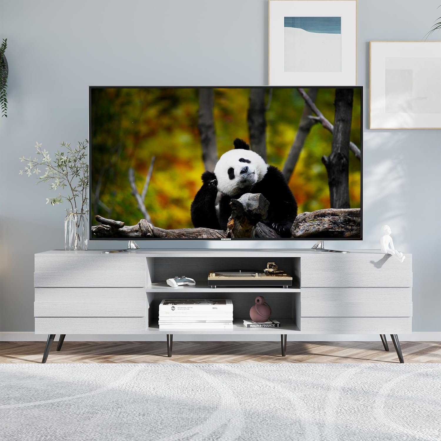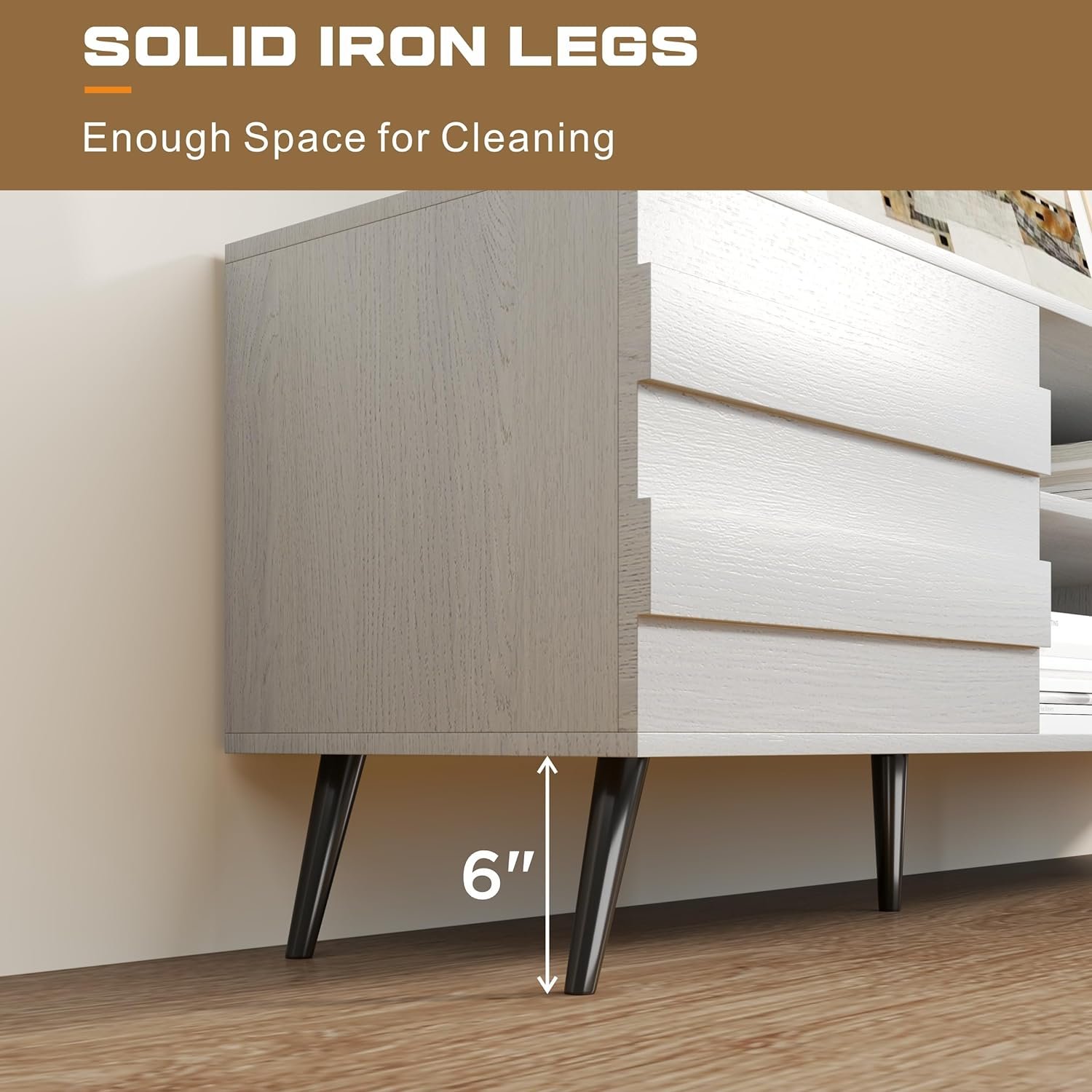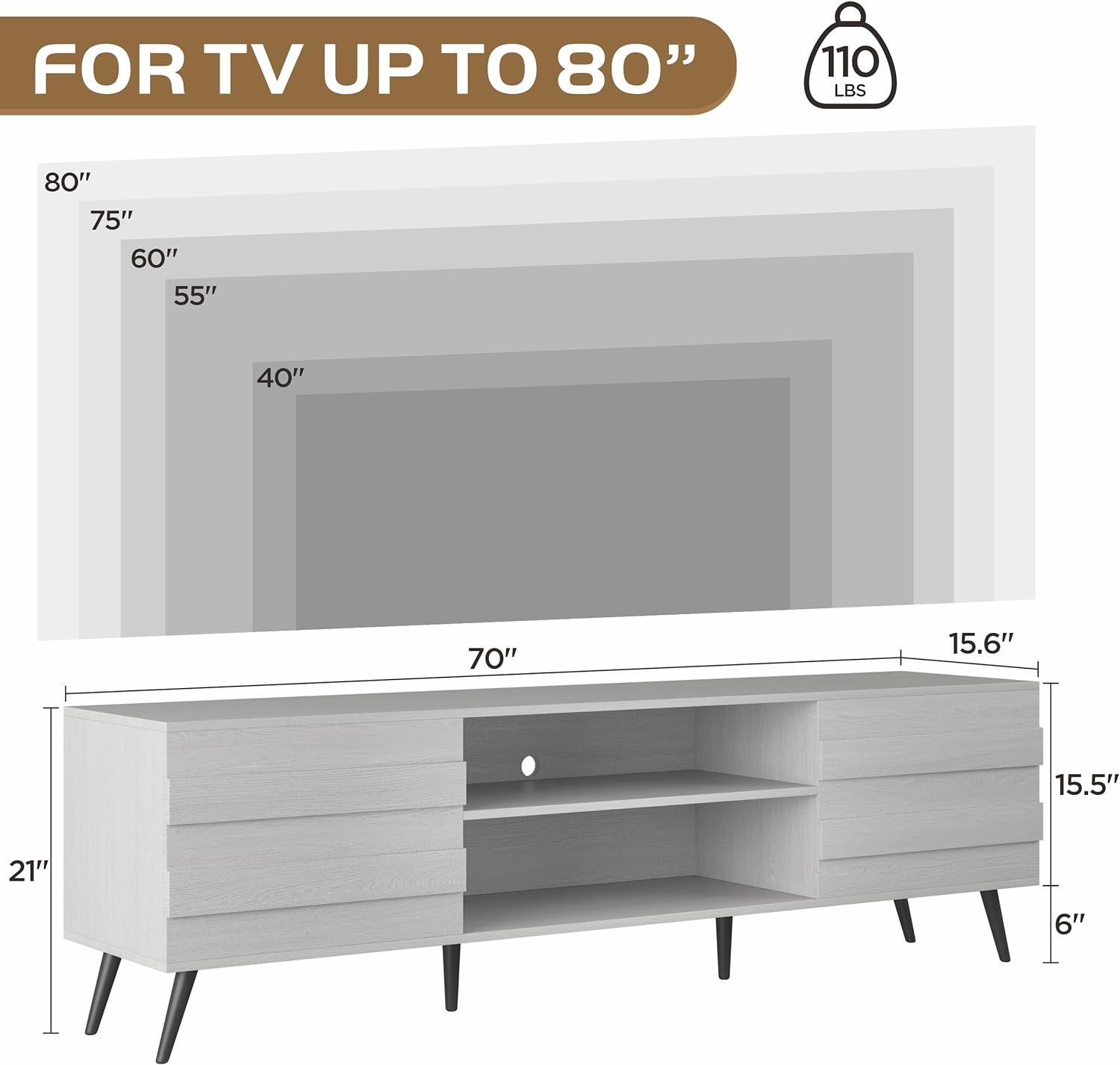 【For TVs Up to 80”】This television stand is made of high quality MDF board and 6 solid Iron legs to ensure both stability and sturdiness. This TV stand is suitable for 80 75 70 60 50 inch TV and is perfect for your living room or bedroom.