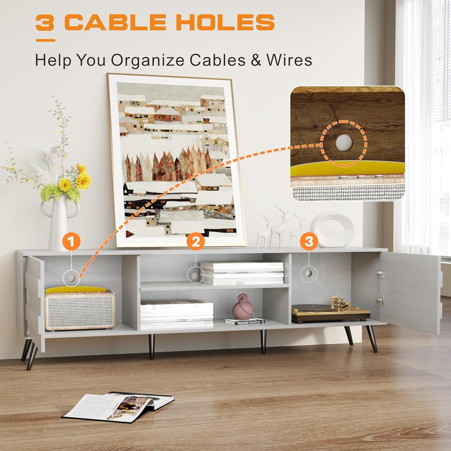 【Abundant Store Space】This TV console provides ample storage space perfect for game consoles, gaming accessories, wifi routers, audio equipment and other TV components. Two compartments with doors keep dust out and aesthetics in check.