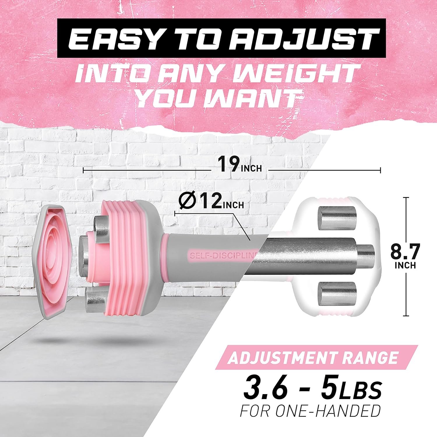 SPEEDY, EASY WEIGHT ADJUSTMENT: Change the weight of the Adjustable Dumbbell Set from 3,68 pounds up to 5 pounds in no time by adding six small blocks on each one handed weight; Great fits for any fitness level and exercise goals