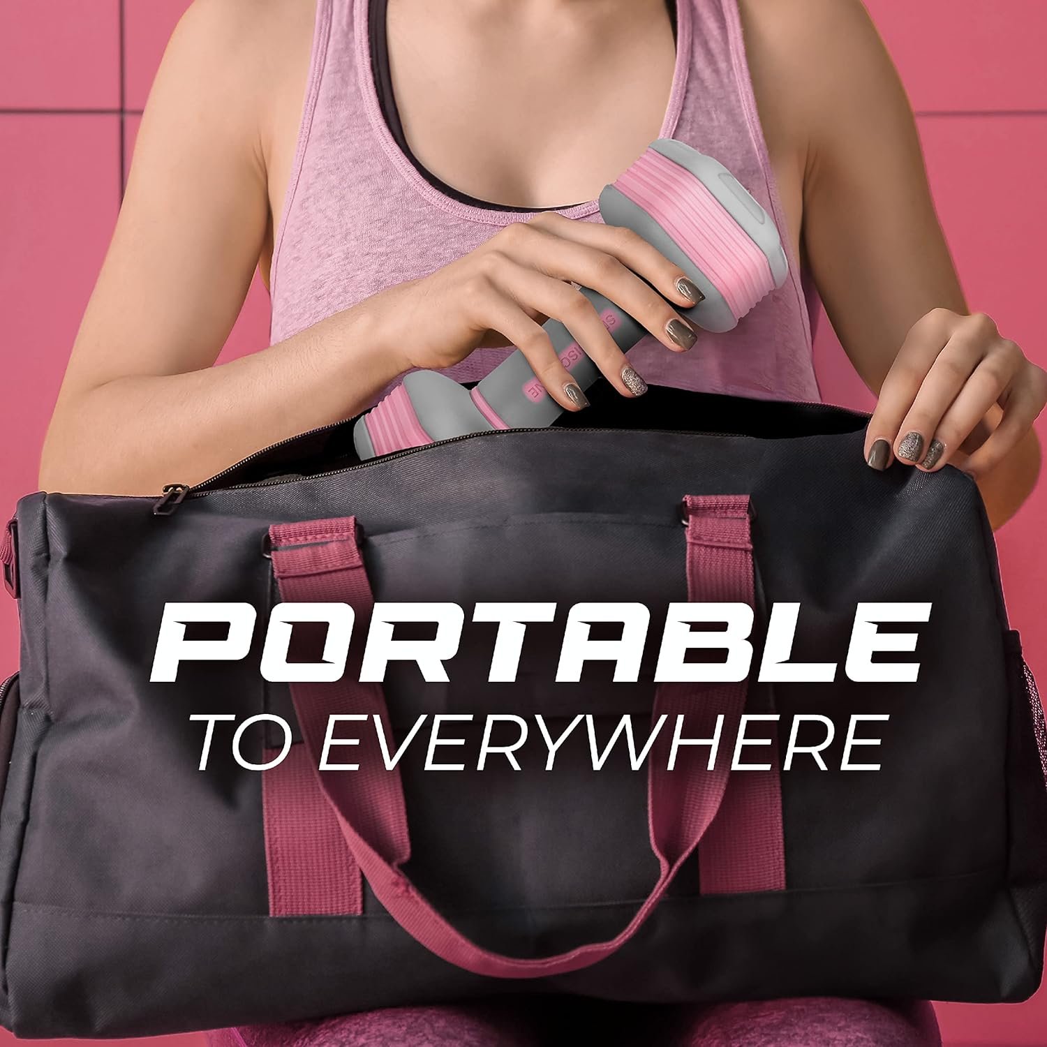 EXERCISE ANYWHERE AND EVERYWHERE: Compact and easy to carry around, Adjustable Dumbbell Set allows the ability to exercise anywhere in total comfort all while getting the natural hand weight feel; Its smart design saves space as well