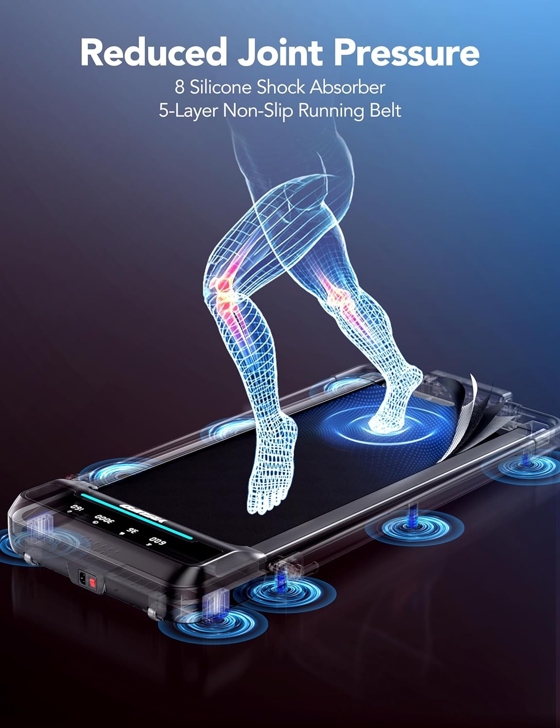 【Protect Your Knees & Joints From Injury】: YISUFO treadmills use fine grass grain belts, which are more slip resistant and easier to clean and maintain than diamond treadmills; 8 silicone shock-absorbing cushions provide effective cushioning for your back, joints, muscles, knees and ankles