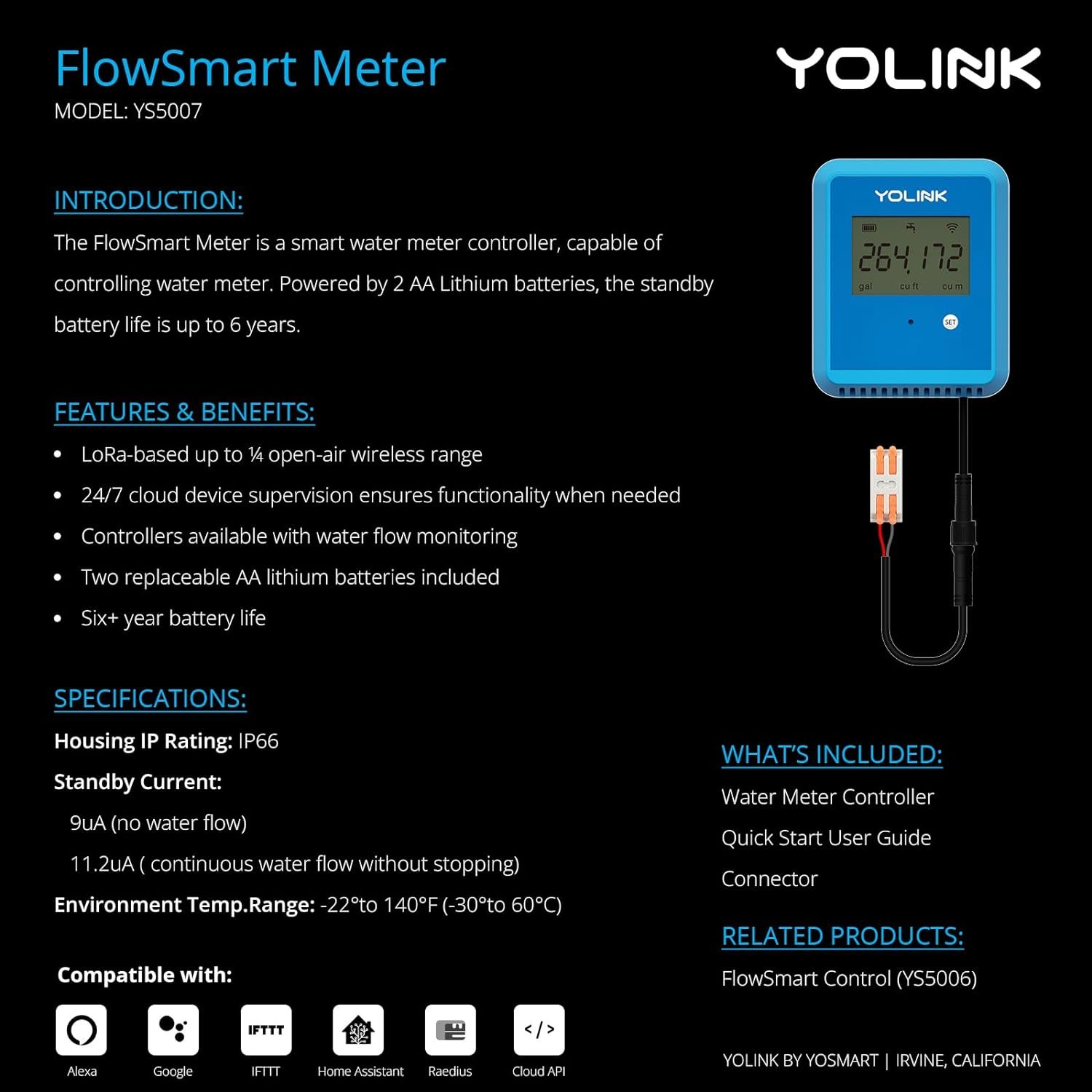 INDUSTRY-LEADING BATTERY LIFE: Our YoLink FlowSmart Meter has batteries that lasts up to 10 years! Invest in sustainability and peace of mind with a reliable meter that’s built to perform year after year.