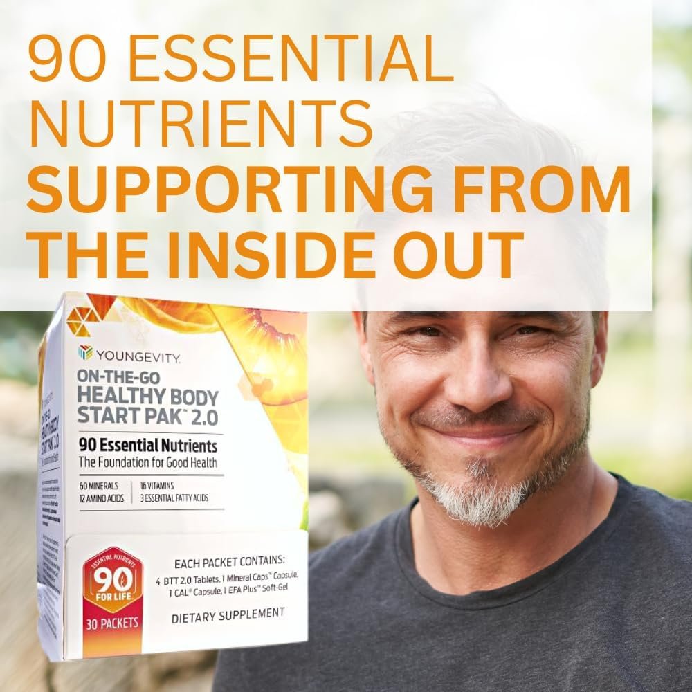 Youngevity On-The-Go Healthy Body Start Pak 2.0 – Includes Multi-Vitamins, Minerals, EFAs, & Amino Acids | 90 Essential Nutrients | 30-Day Supply