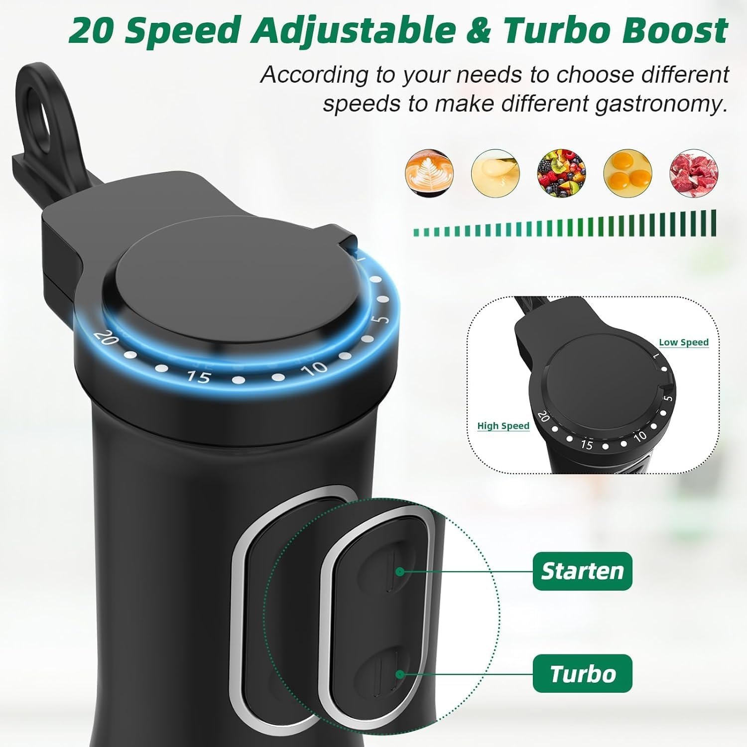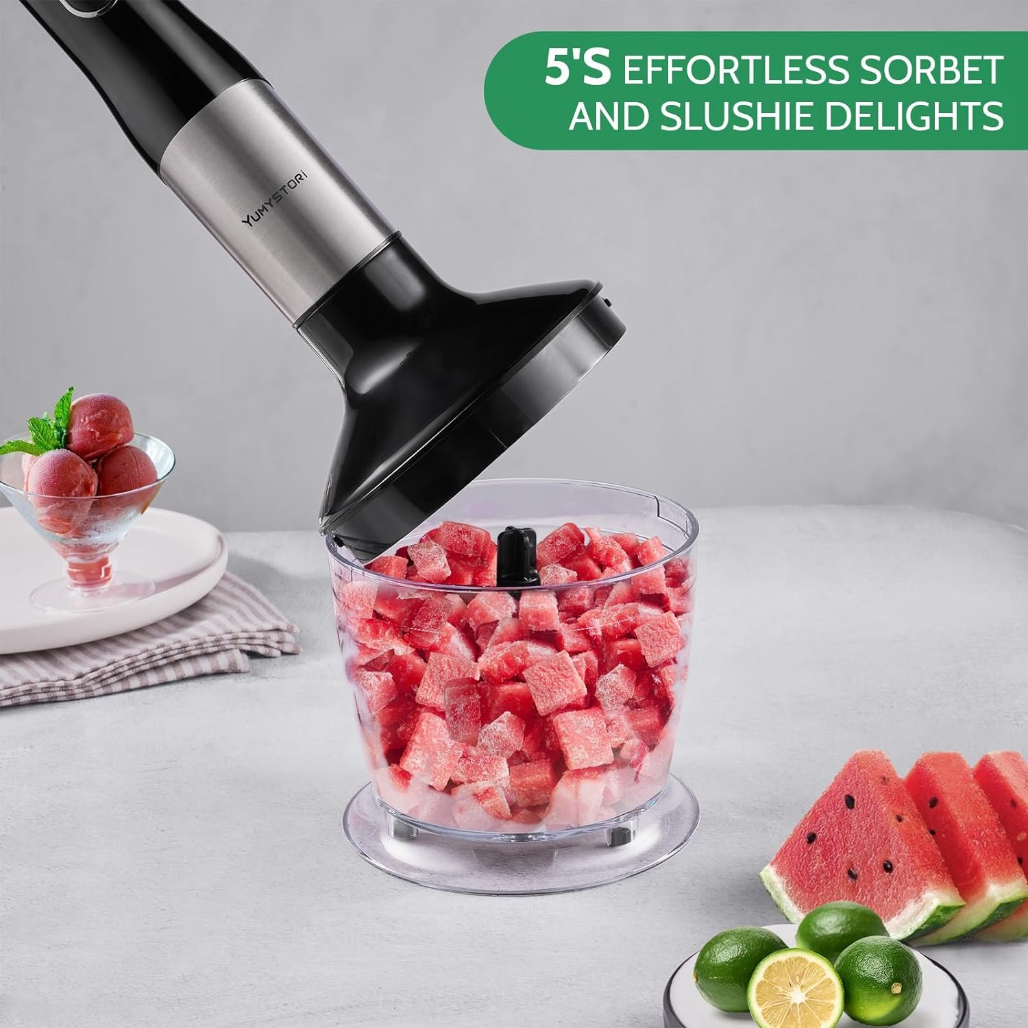 Yumystori 7 in 1 Immersion Hand Blender, 800W Powerful Motor, Anti Splash, 20 Speeds, Storage Save Space, Scratch Resistant, Ice Crushing, Multi Attachments