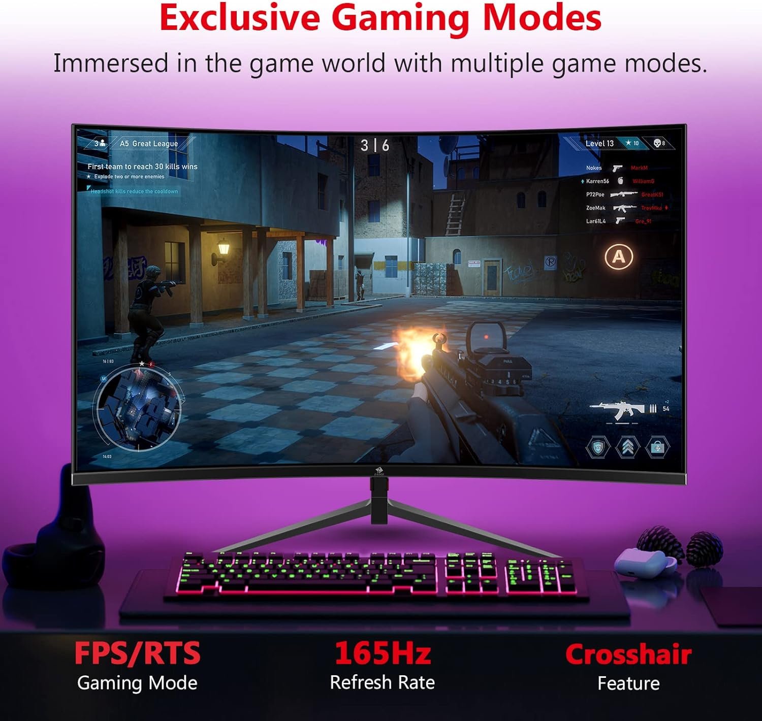 With 165Hz refresh rate and 1ms response time, ghosting and blurry will be dramatically reduce, our curved gaming monitor brings unprecedented smoothness to your games.