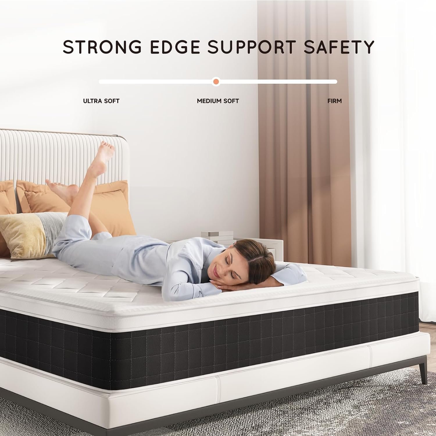 【Safe Material, Sweet Sleep】Approved by CertiPUR-US, all foams of spring foam mattresses are tested be free of harmful substances. Skin-friendly knitted euro top cover for allergy sufferers and high Quality steel springs for the rust & deformation prevention. All are just right. There’s nothing better than sleeping on the 10 mattress full with families to enjoy a healthier, sweeter sleep.