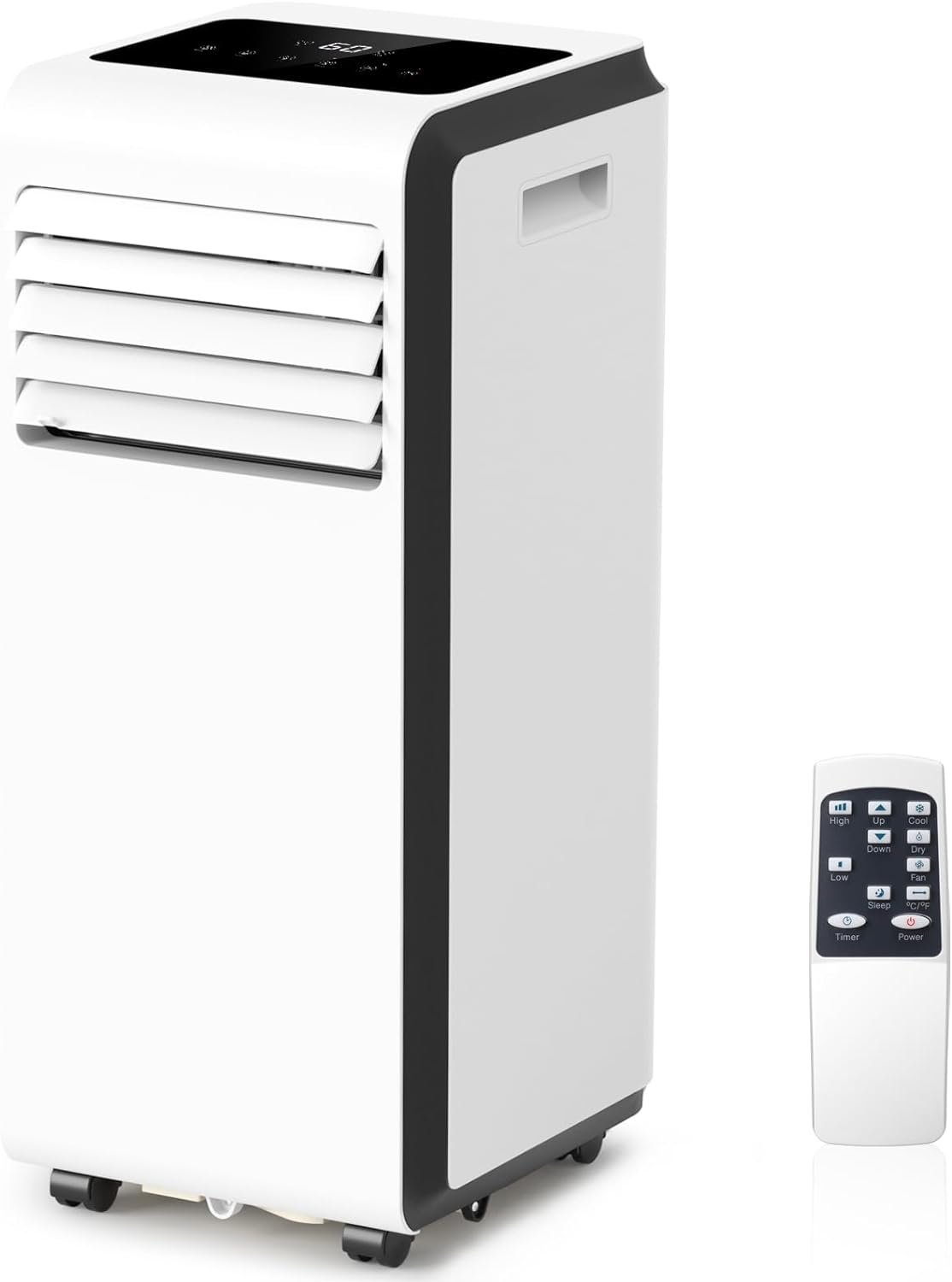 【Easy to Install & Operate】- Just roll this portable air conditioners with wheels into any room with a hung window or sliding window, attach the included hose & window adapter, plug it into an outlet. And offer LED digital display/compact remote to operate easily.