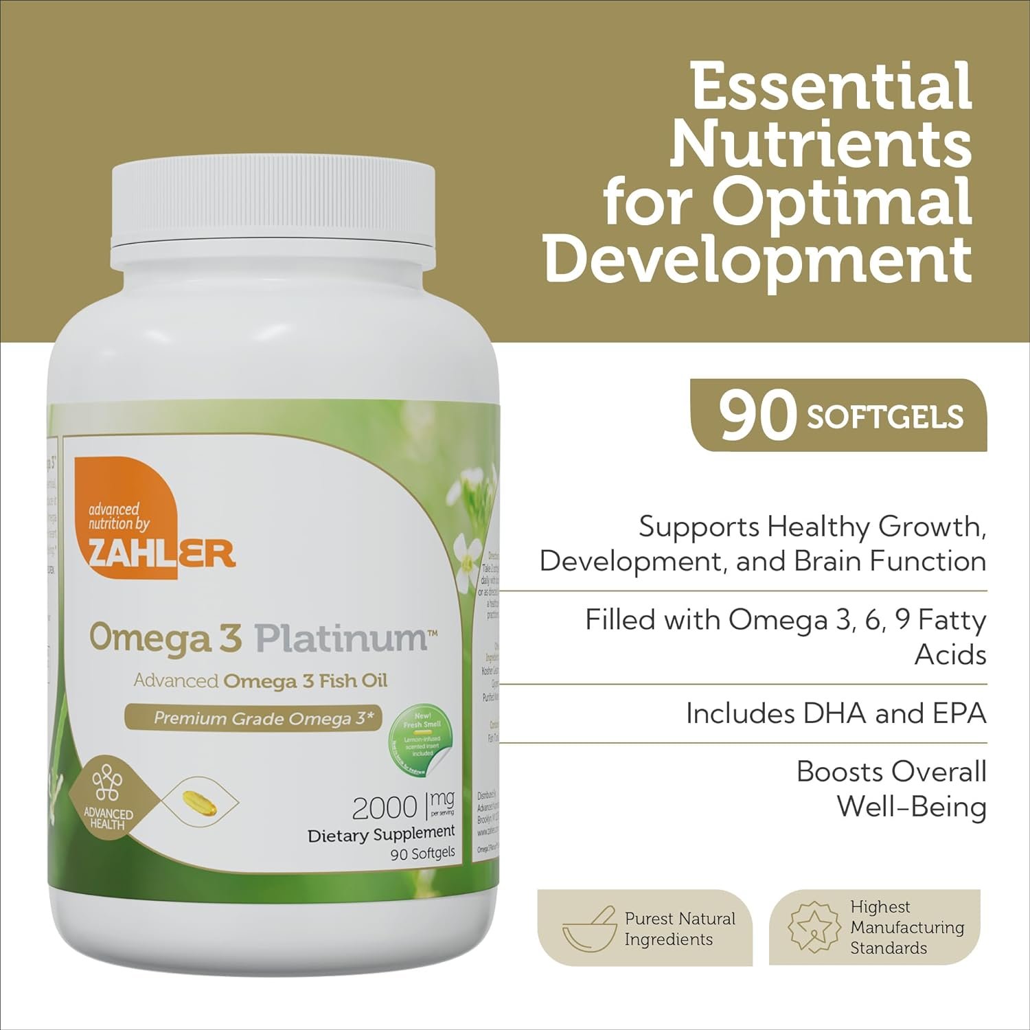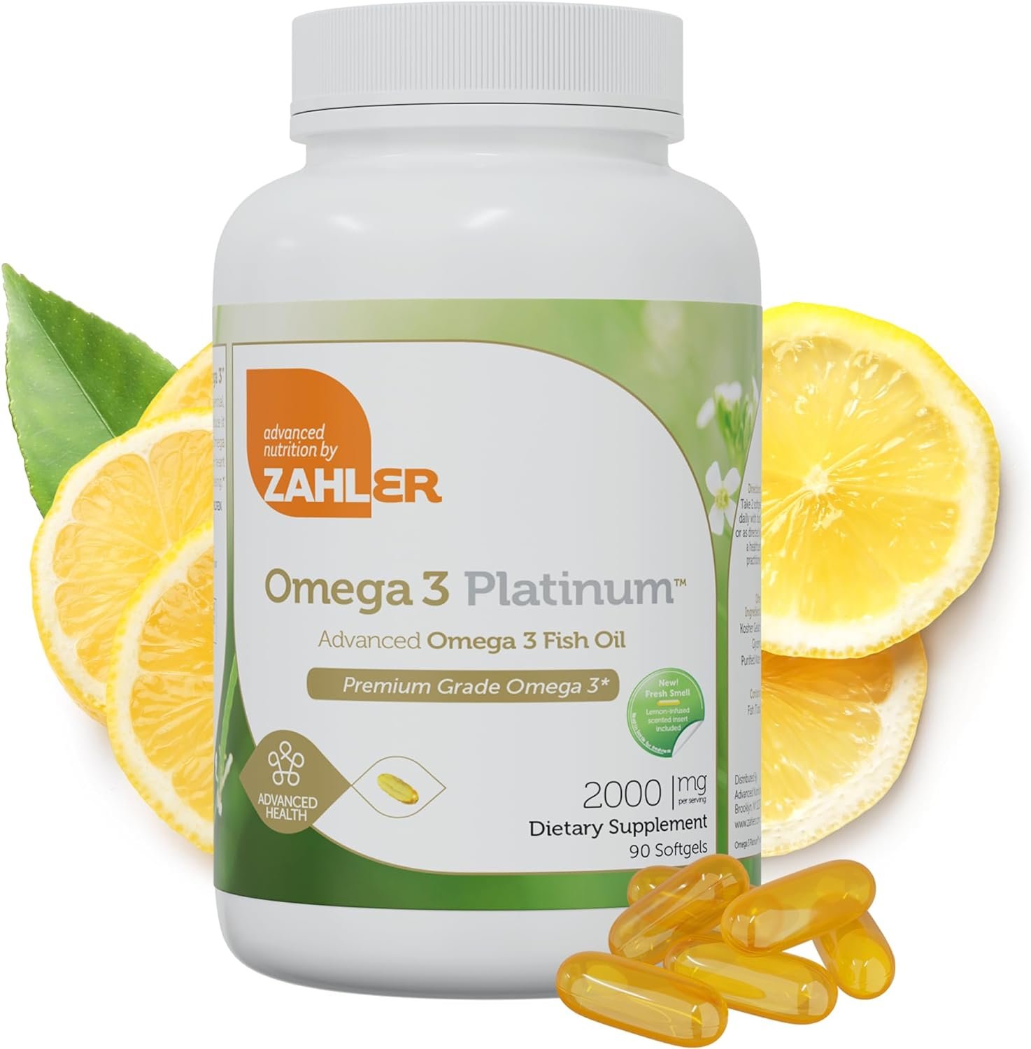 ADVANCED OMEGA 3 FORMULA – Zahler Omega 3 Platinum offers a high-potency dose of 2000 mg fish oil per serving, enriched with 1100 mg of Omega 3s, including 600 mg EPA and 400 mg DHA. Designed to support heart, brain, and joint health.