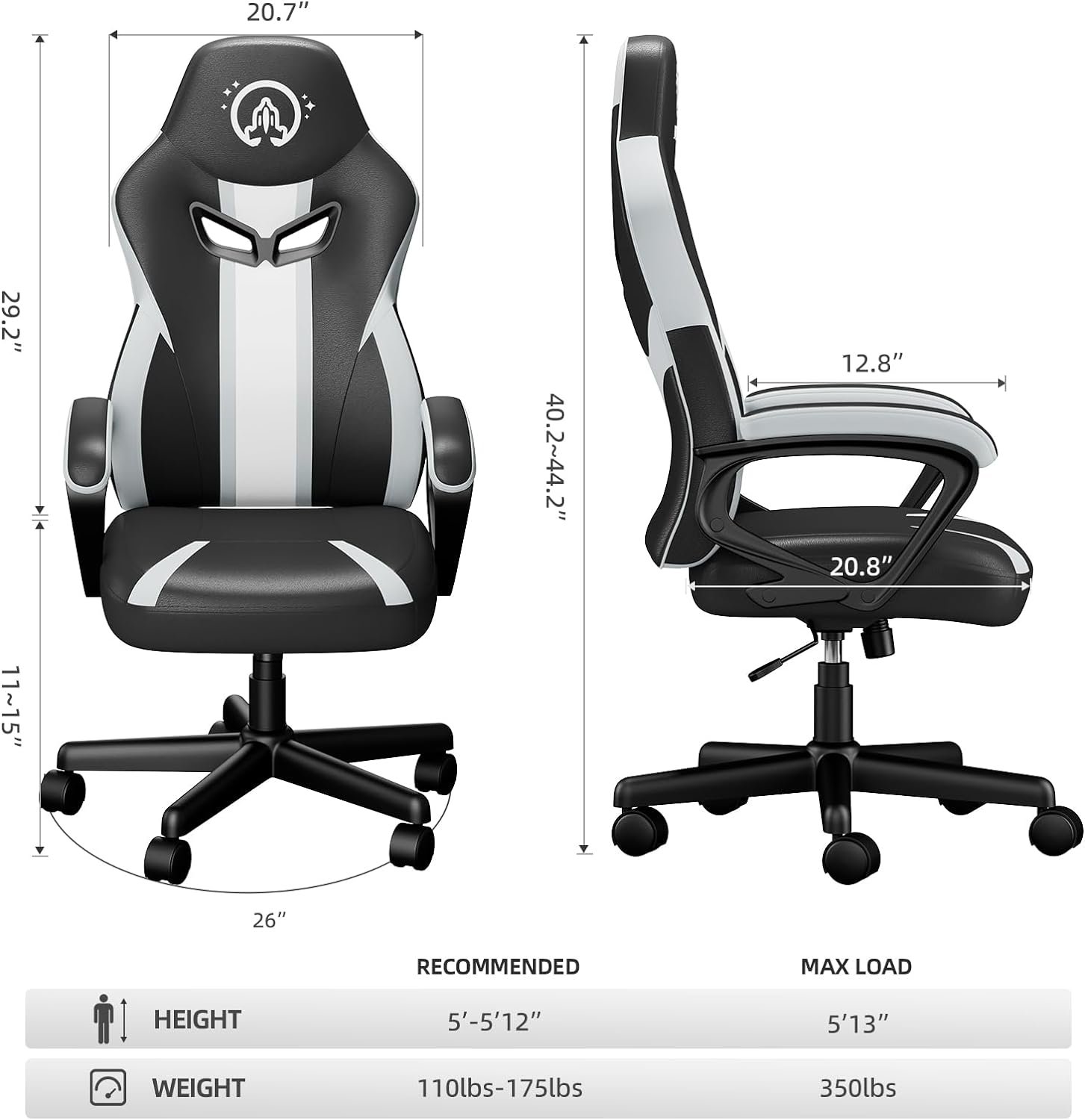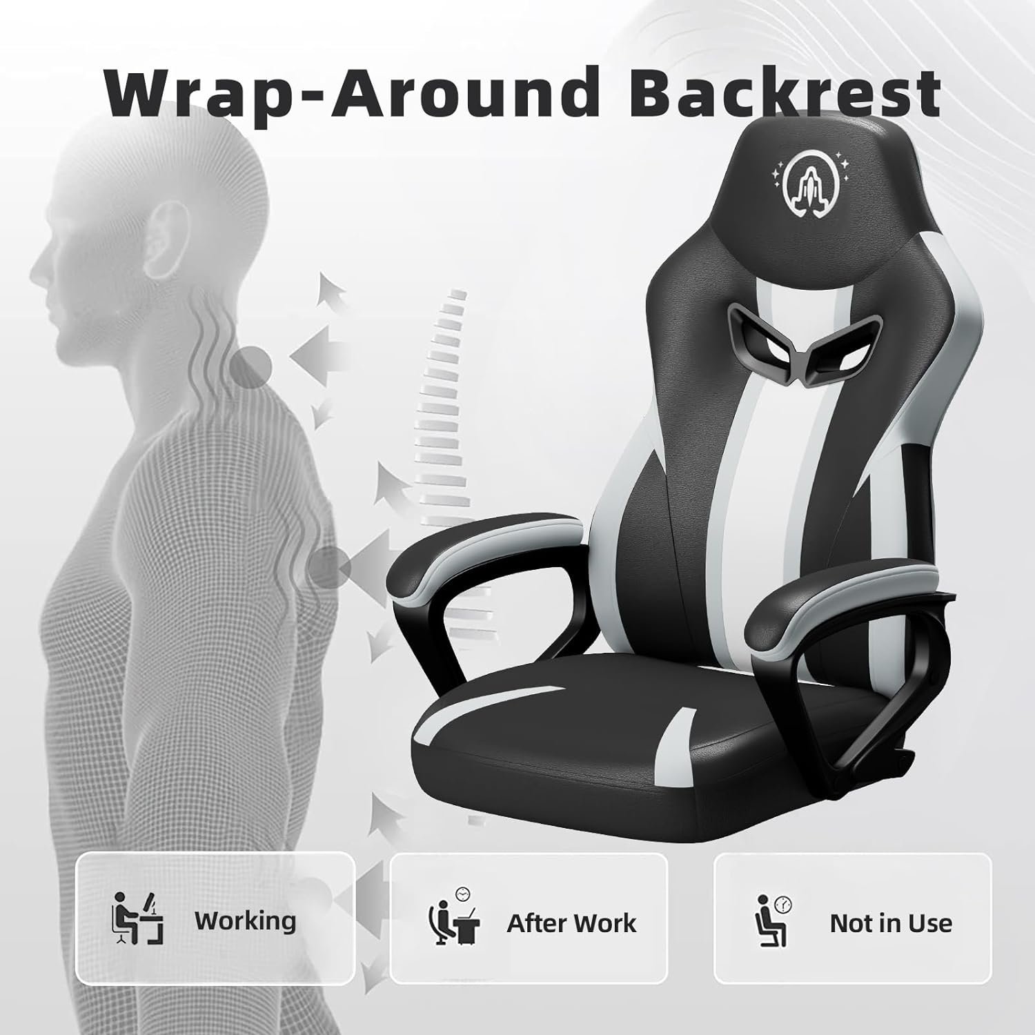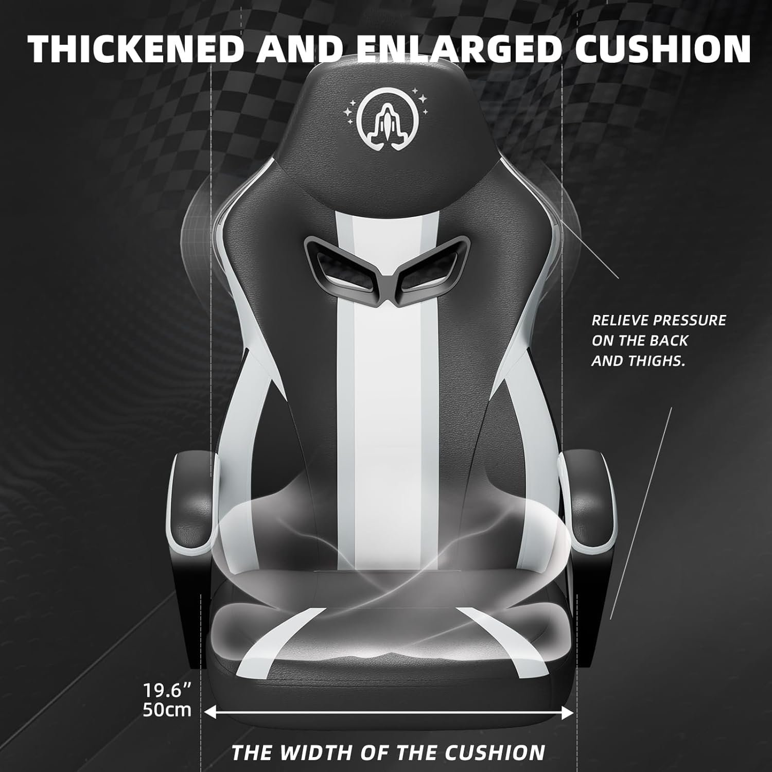 【Ergonomic Gaming Chair】: Abandoning the traditional lumbar pillow design, the ergonomic curved design is directly applied to the lumbar position of the gaming chair. The streamlined back with the seat’s rocking function fits the spine and lumbar area better than a regular lumbar pillow design, providing great comfort and relaxation for your back.