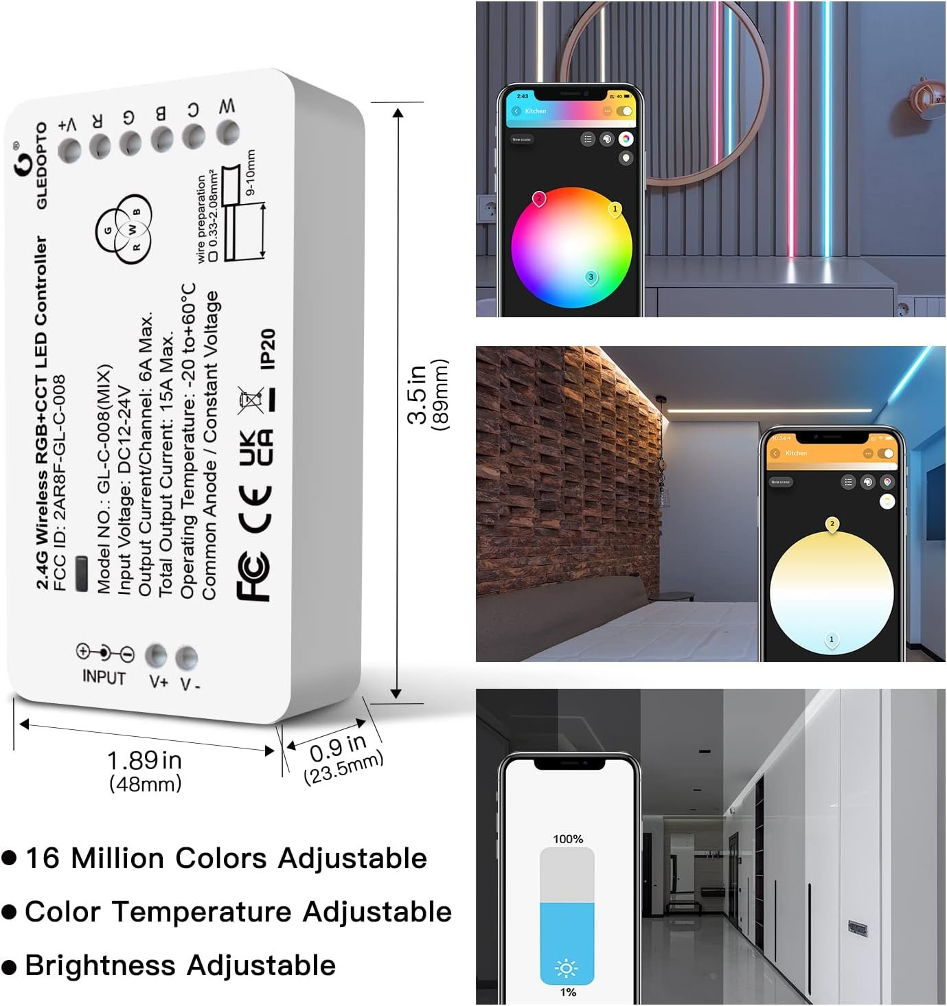 Smartphone App Control: Use your smartphone to control the LED strip light with the ZigBee RGBCCT Controller Mix