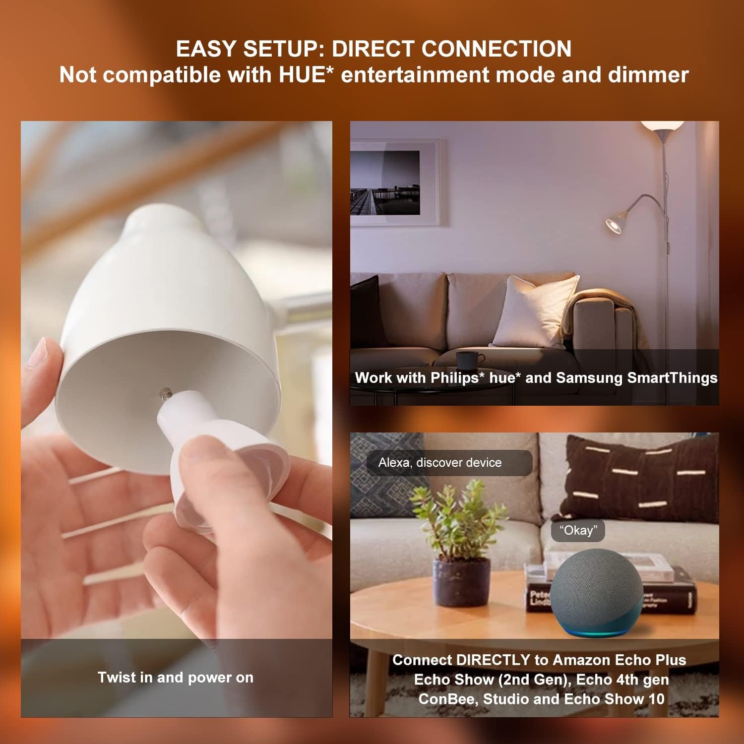 【Important Note】LEDEPLY Zigbee GU10 smart bulbs can be connected DIRECTLY to Amazon Echo Plus, Echo Show (2nd Gen), Echo 4th gen, Studio and Echo Show 10. All other Alexa devices, like the Echo Dot, and Google home, require a Hub. Compatible with ConBee. Not compatible with Apple Homekit or the Hu*e* Entertainment mode.