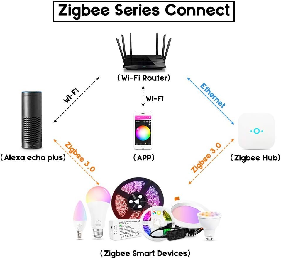 The ZigBee RGB+CCT Controller works with most ZigBee Light Link or ZigBee 3.0 Gateways/Hubs.