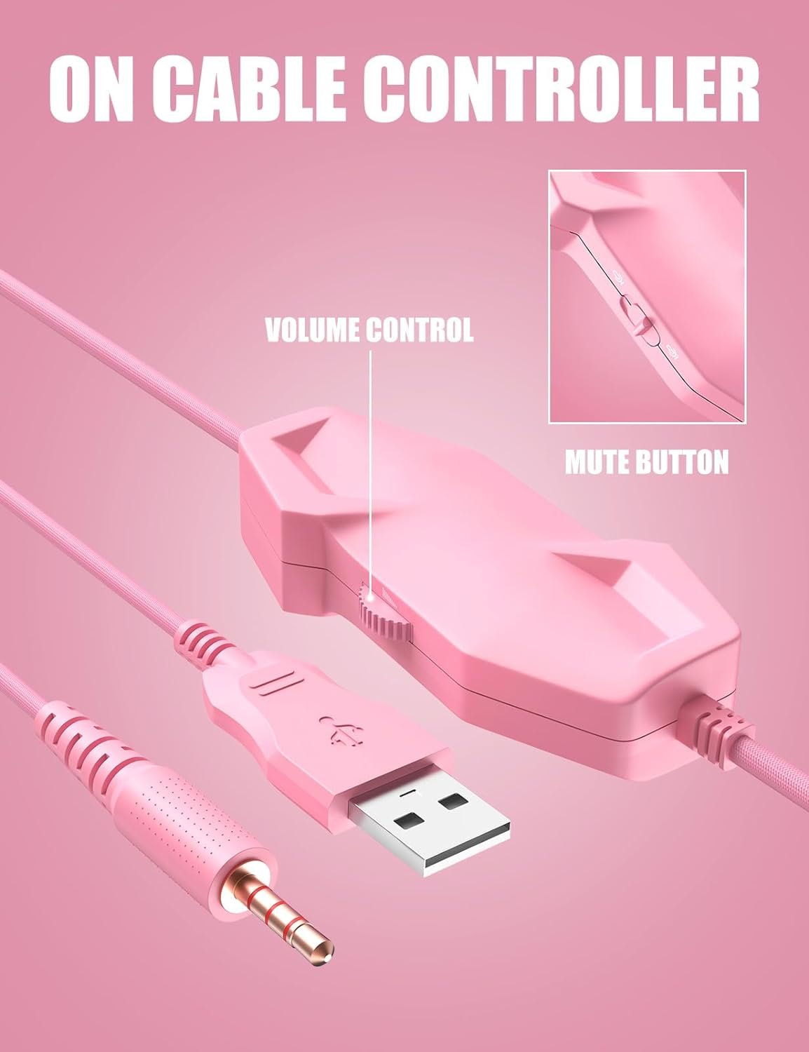 【Cute Appearance】kawaii headset with pink outlook and dazzling LED lights, attracting a young girl and nice gift for girlfriend, women and kids. Lightweight and Comfortable wearing. adjustable headband fits most head shapes, soft earmuffs with bionic protein for wearing comfort and long time use.