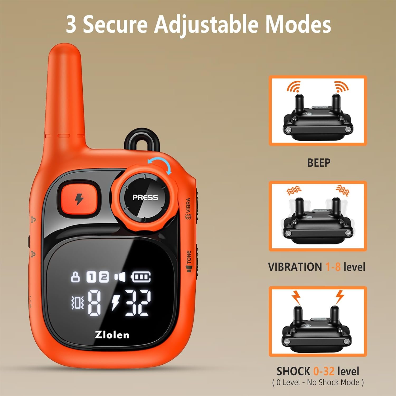 【Multiple Training Modes and Adjustable Options】: Zlolen electric collar offers various training modes and adjustable options, including sound, vibration (1-8), and shock (0-32) . You can freely select and adjust the stimulation modes based on your dog’s needs, ensuring the training collar meets the requirements of different dogs.