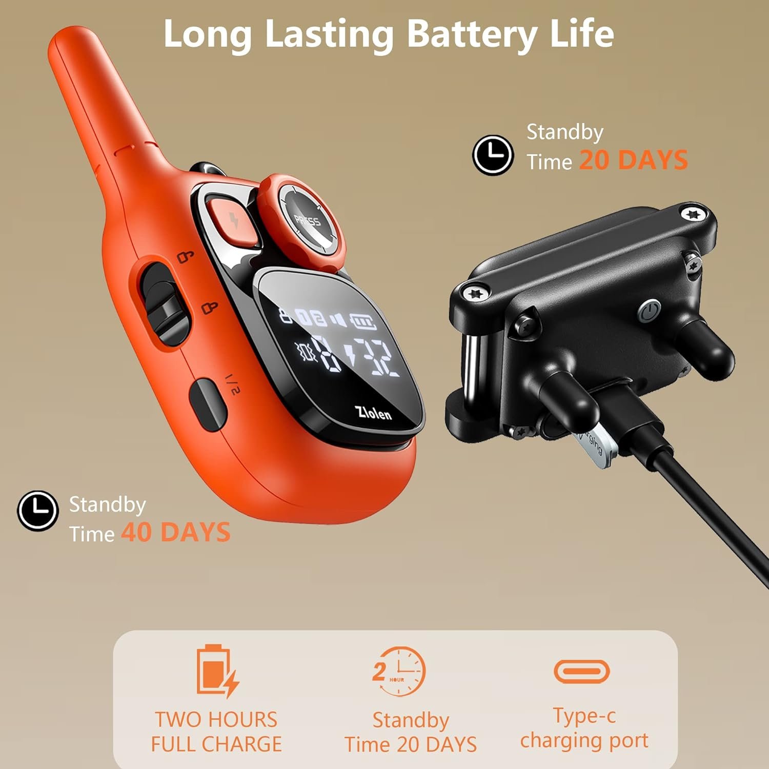 【Long Battery Life and Convenient Charging】: Our e collar is equipped with a rechargeable battery that offers excellent battery life, supporting 40-60 days training sessions. Additionally, it offers convenient charging options, allowing you to charge via USB outlet of the PC/power bank/car, ensuring the training collar always maintains sufficient power.