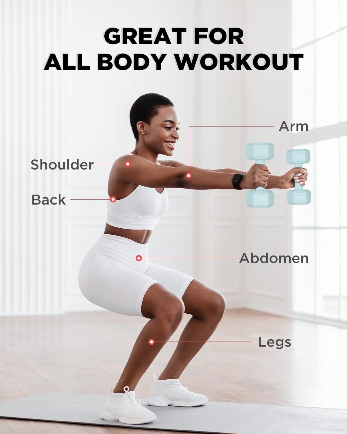 [NON-SLIP HANDLE] By having ergonomic handles with anti-slip patterns, the dumbbells fit your palms better during exercise without worrying about slipping.