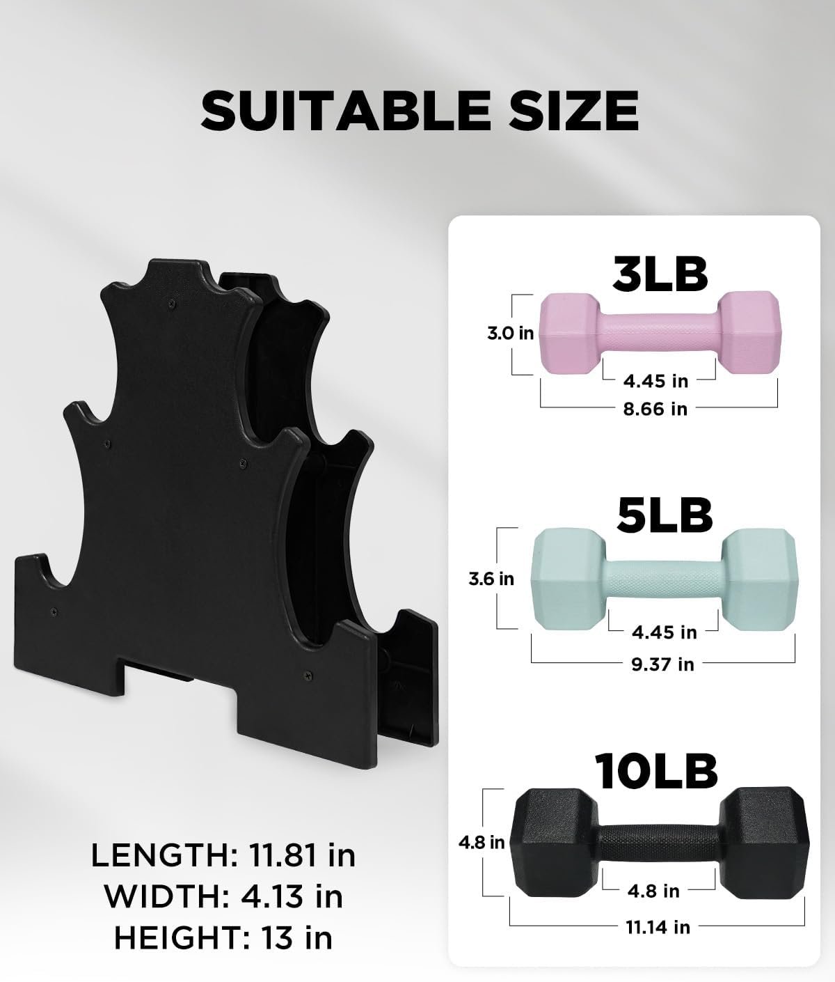 [SET INCLUDED] The dumbbell set includes 3 pairs of weight dumbbells: 3LB, 5LB, and 10LB, and there is also a sturdy iron stand for good storage of dumbbells.